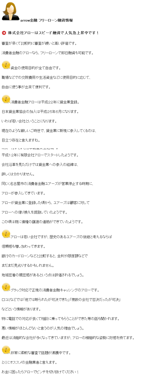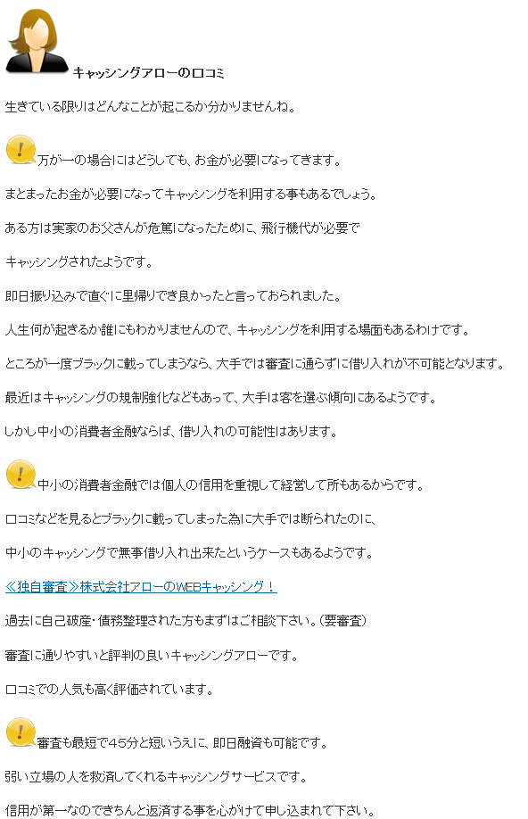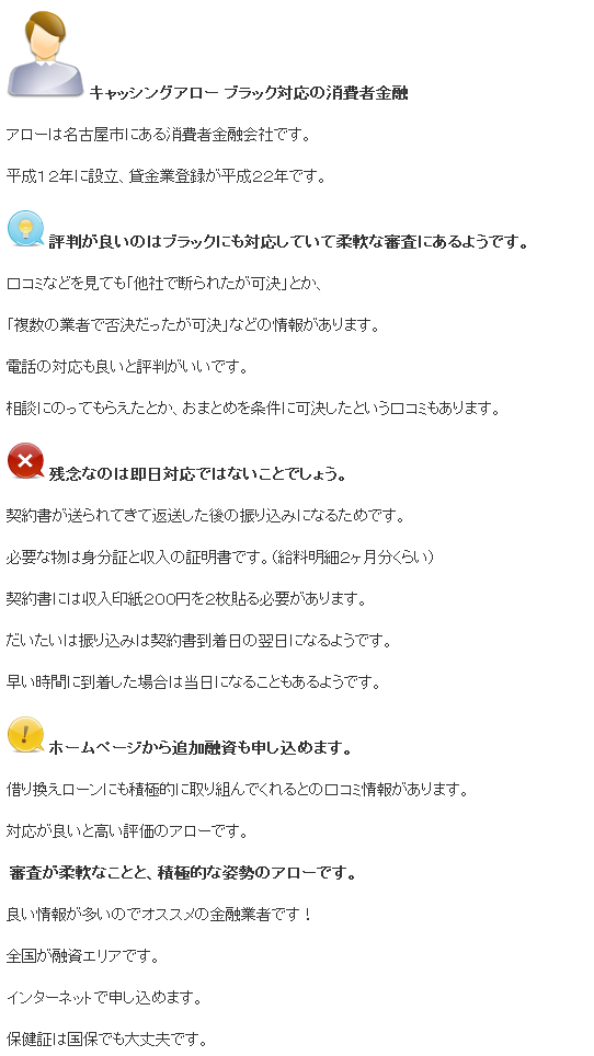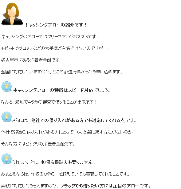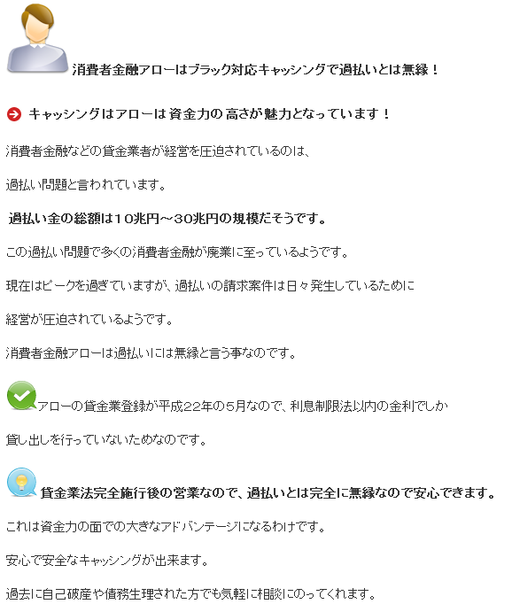 ブラック対応で正規の消費者金融キャッシングのアローです。