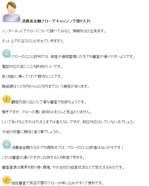 弱い立場の人にも融資してくれると評価が高まっているアローです。