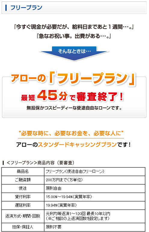 アローローン独自の柔軟審査で安心借入れフリープラン