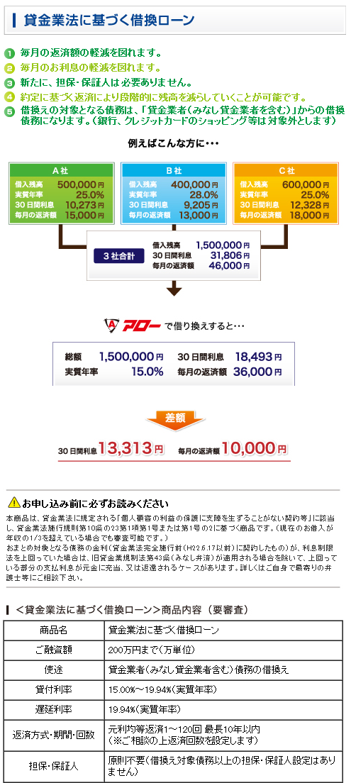 9、株式会社アロー 貸金業法に基づく借換ローン