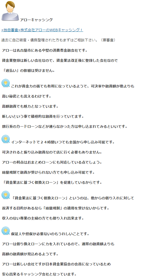 口コミなどでは自己破産歴のある方がアルコシステムで否決後にアローで