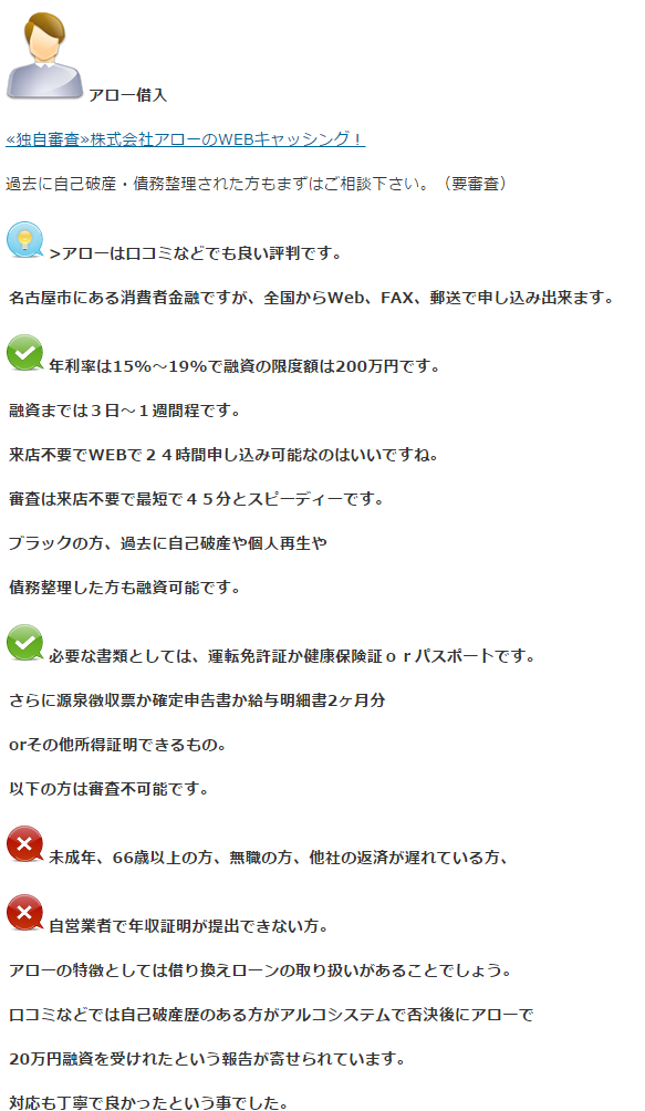 口コミでわかる消費者金融『アロー』の全知識になります。