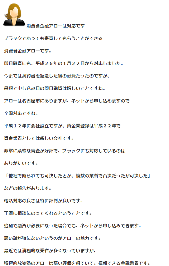 柔軟な審査が特徴の消費者金融アローはブラックにも対応です