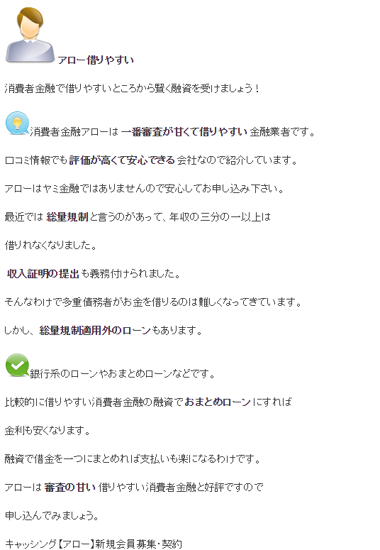 借りやすい消費者金融アローなら審査も甘いのでおすすめです!
