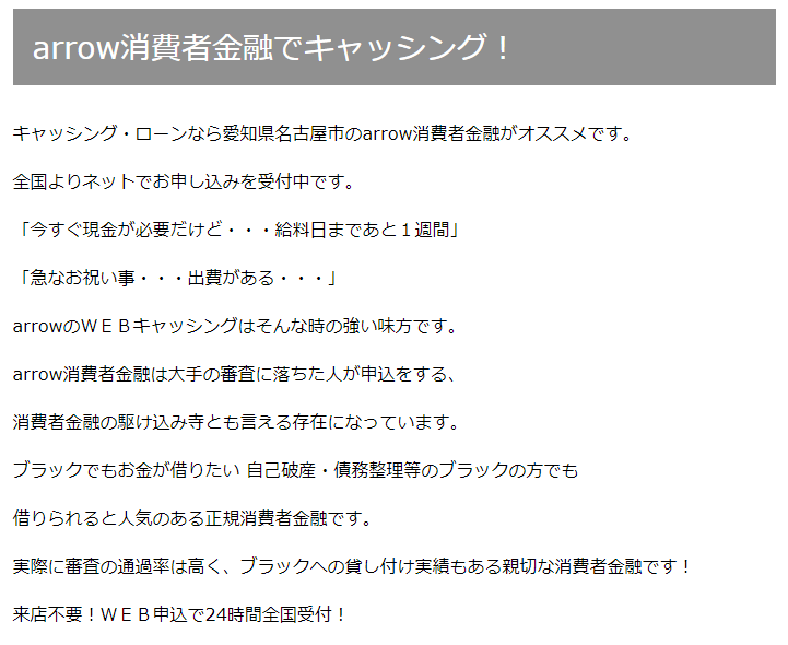 キャッシングアローは消費者金融の駆け込み寺的な存在です!